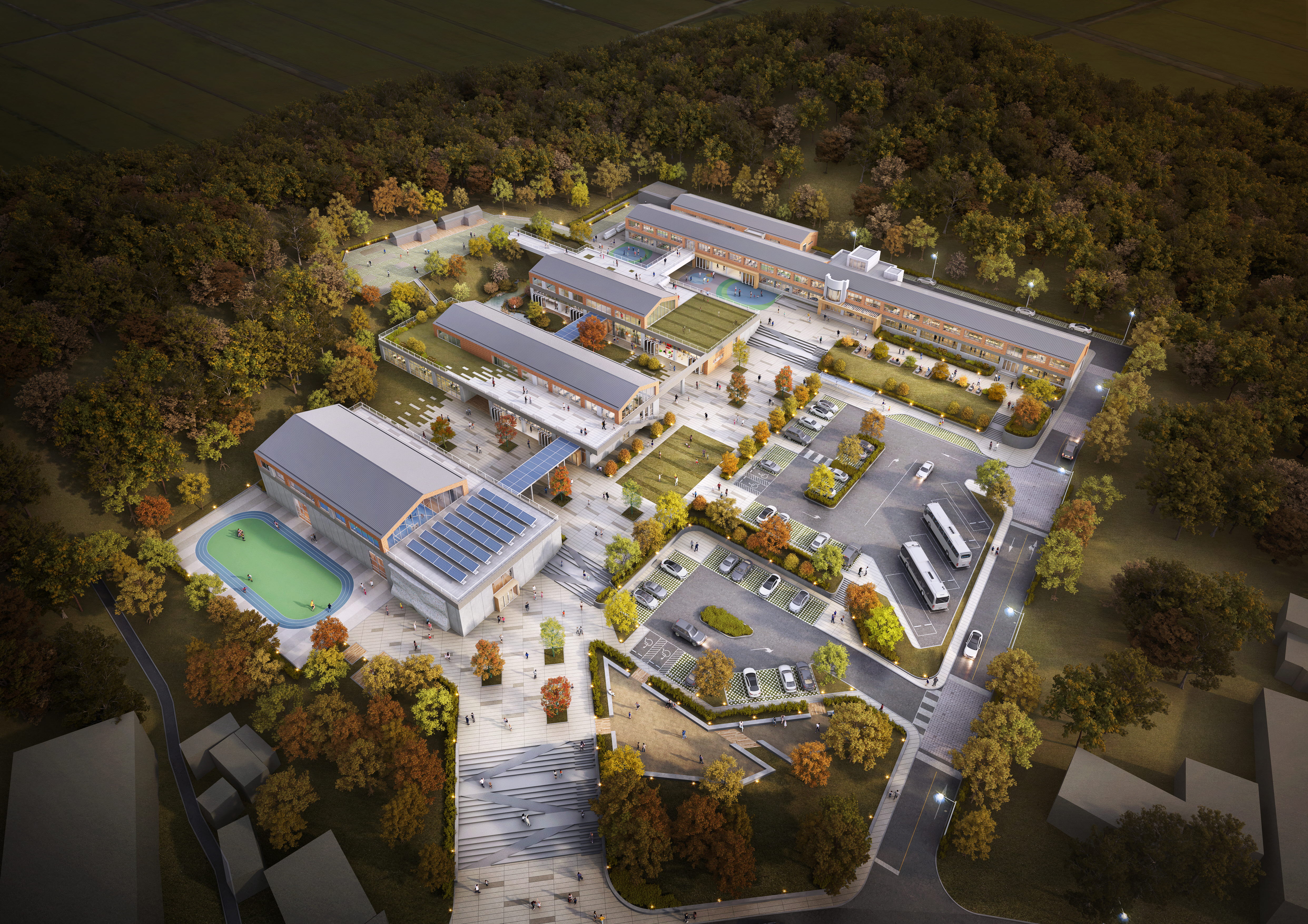오랜시간 지역의 중심이었던 학교가 문을닫고, 마을의 풍경은 사라졌지만 그 자리엔 새로운 가능성과 이야기가 피어납니다. 본 복합시설은 고흥 내 교육복지 격차를 해소하는 기능을 넘어 세대와 기능, 마을과 학교가 유기적으로 엮이는 공생할 수 있는 공간이자 마당을 만들고자 하였습니다. 아이의 웃음소리와 어르신의 발걸음이 한 자리에 머물고, 공부와 쉼, 운동과 돌봄이 자연처럼 섞이는 열린 공간들과 폐교된 자리위에 켜켜이 쌓인 기억을 양분으로 삼아 새로운 쓰임과 움직임으로 채워질 마당은 고흥 지역의 일상과 관계를 다시 연결하는 중심점이 될 것입니다.
